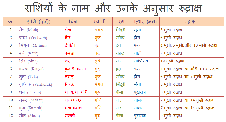 राशि के अनुसार रुद्राक्ष – Rudraksha As Per Rashi